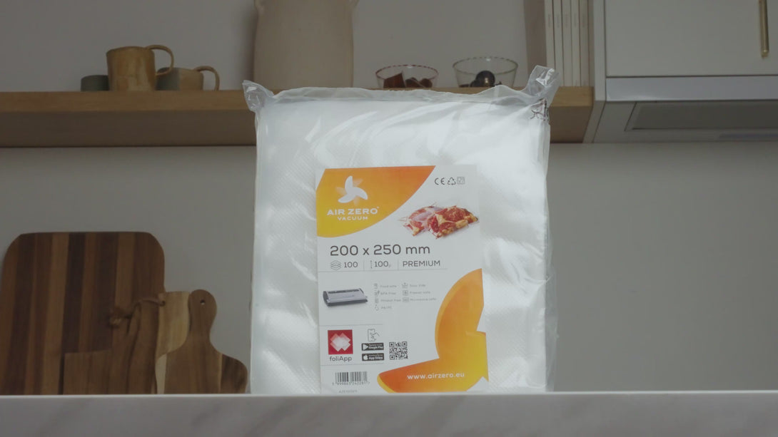 - Air Zero Premium kamrás vákuumtasak: 20×25 cm (100 db) és 20×30 cm (100 db).